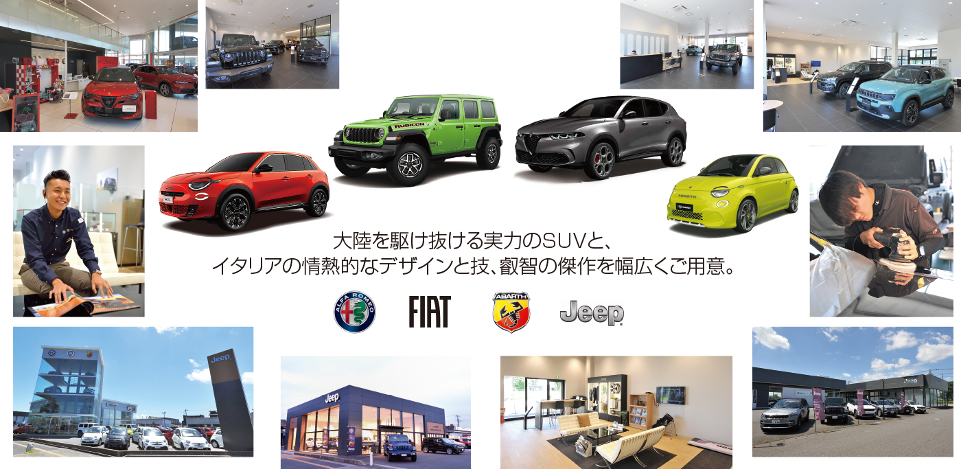●ステランティス正規ディーラーとして、アルファロメオ、フィアット、アバルト、ジープの新車・中古車販売