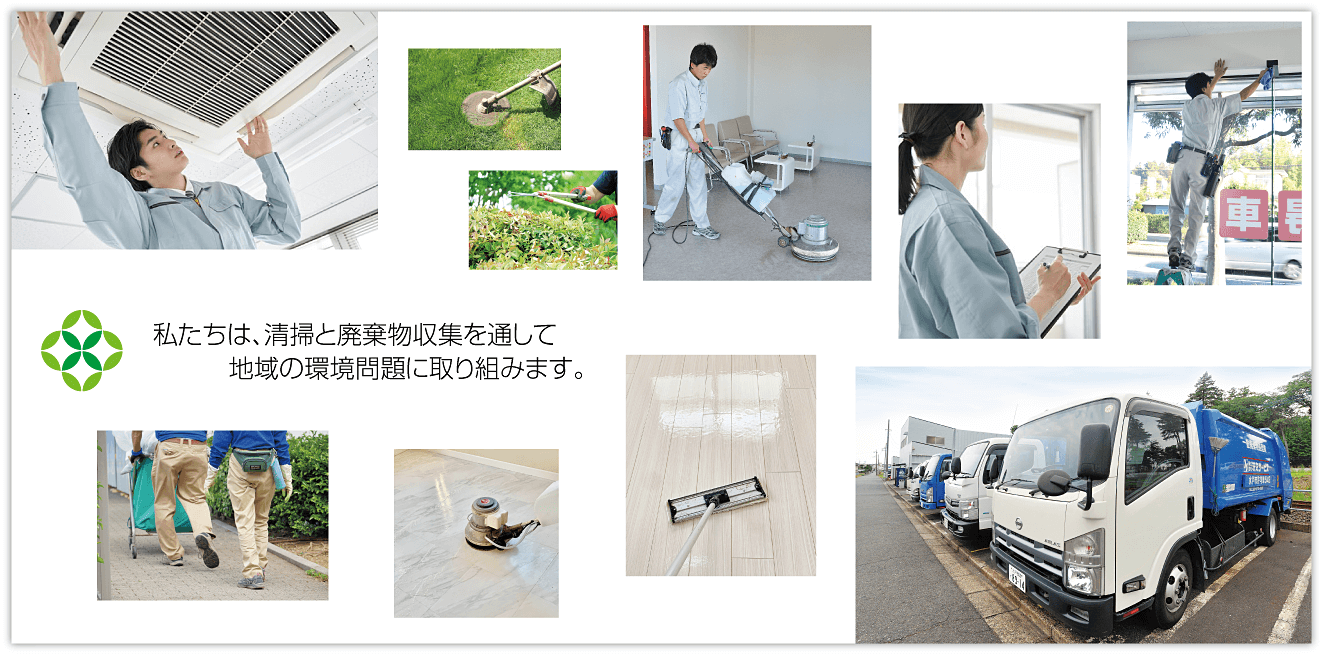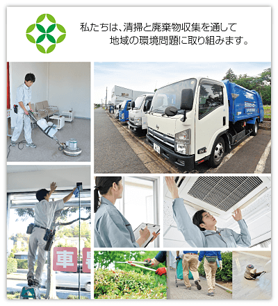 一般廃棄物や産業廃棄物の収集・運搬、店舗ビルの清掃などの事業を行っております。